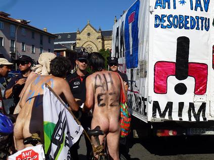 - Poliziaren jazarpenaren gainetik, gure gorputz biluztuak erabili ditugu AHTren aurkako aldarriak haizatzeko.